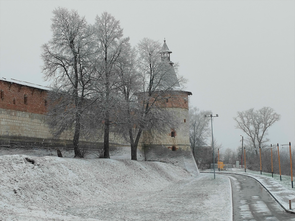 Далее предстоит развилка. Путь продолжается на запад — к набережной и плотине. Пройти можно по ул. Музейной или по ул. Пожарского: первую уже благоустроили, вторую — еще нет. Здесь можно попробовать портреты с кремлем на заднем плане в зоне боке. На набережной же главную ценность представляют деревянные дорожки, виды на реку, иллюминация и многочисленные ступеньки, особенно, в зоне после плотины. Все это можно творчески обыграть, а заодно и покормить уточек, живущих после острова на р. Осетр. На самой же плотине доминантой является мостик, с которого открывается живописный вид на реку.