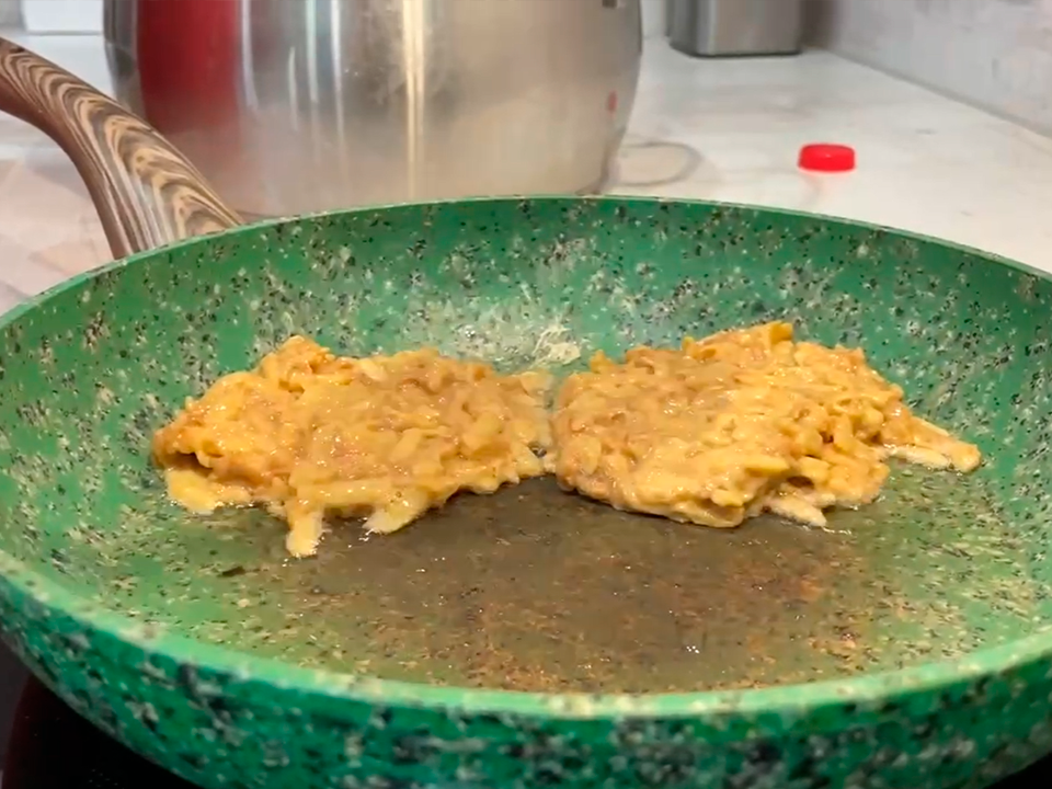 Оладушки выкладываются на сковородку и обжариваются с двух сторон до готовности. Виктор Анатольевич отметил, что они сохранили пряный аромат антоновских яблок.
