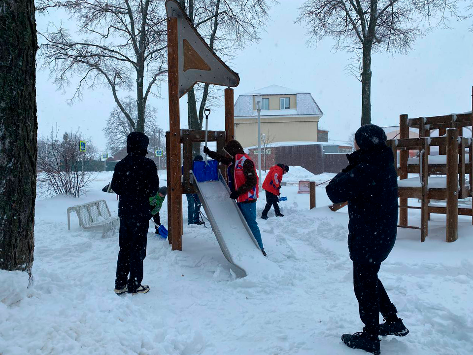 Молодые люди из отрядов «Крылья» и «От сердца к сердцу» (МБОУ «Лицей № 5») очистили снег на двух городских детских площадках на ул. Красноармейская — возле арт-пространства «ЦЕХЪ» и рядом с водонапорной башней. Волонтеры не только убрали снег на территории самих площадок, но и привели в порядок сами игровые элементы.