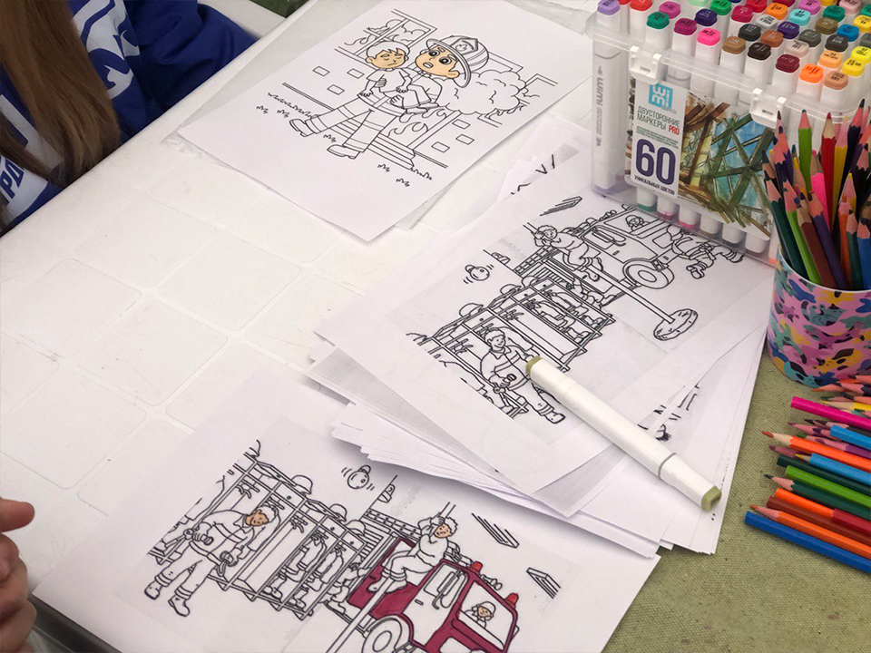 Для интеллектуального досуга были подготовлены тематические игры: «пожарные крестики-нолики» и «пожарные шашки». Самые маленькие гости с удовольствием посещали творческую зону, где раскрашивали картинки, посвященные противопожарной тематике. Этот подход позволил в увлекательной форме донести до ребят жизненно важные правила.