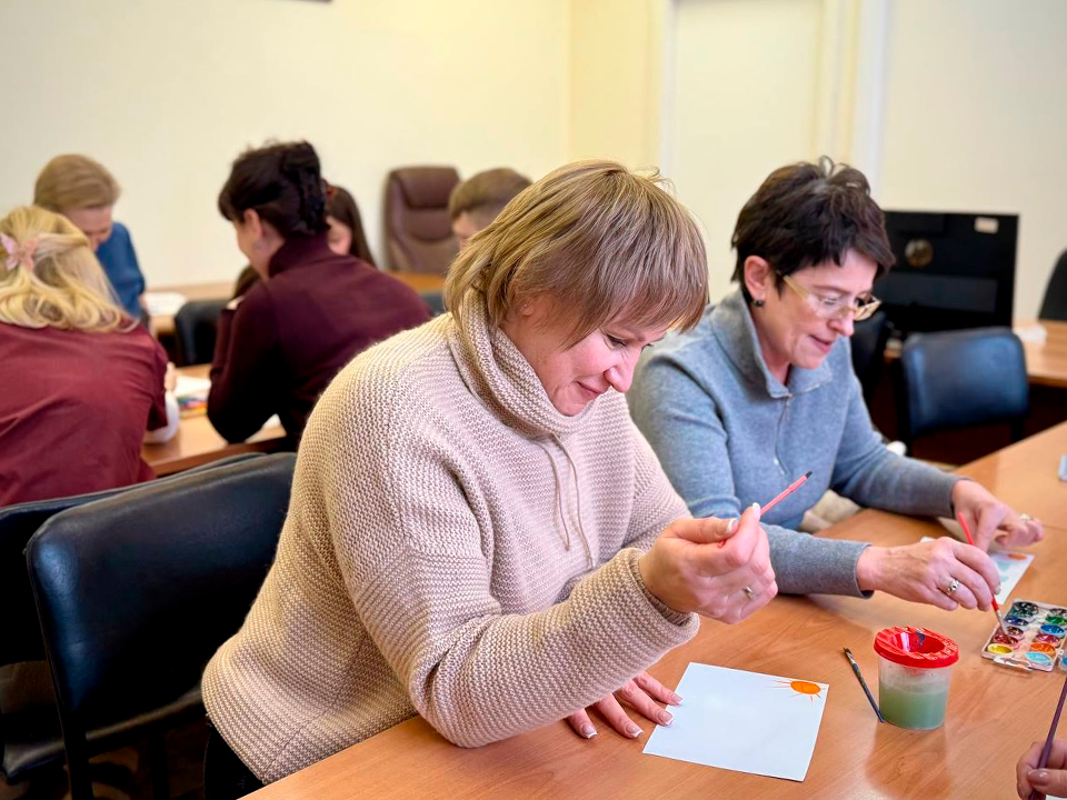 Особый интерес вызвал творческий блок: с помощью рисунков участники визуализировали свое внутреннее состояние, что позволило тренеру лучше понять индивидуальные запросы каждого и дать персональные советы по сохранению психологического равновесия.
