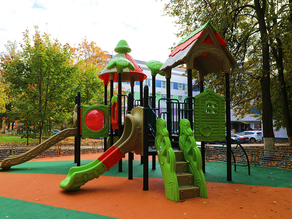 В 1-м квартале в Лыткарине детская игровая площадка представлена в тематике «Большое приключение». Это целое игровое пространство для активных игр и развития фантазии.