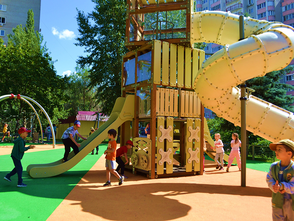 «Стараемся делать так, чтобы дети могли с интересом и пользой проводить время. Поэтому, помимо привычных качелей, горок и песочниц, создаем тематические комплексы: например, про космос, географию или физику», — сказал Воробьев.