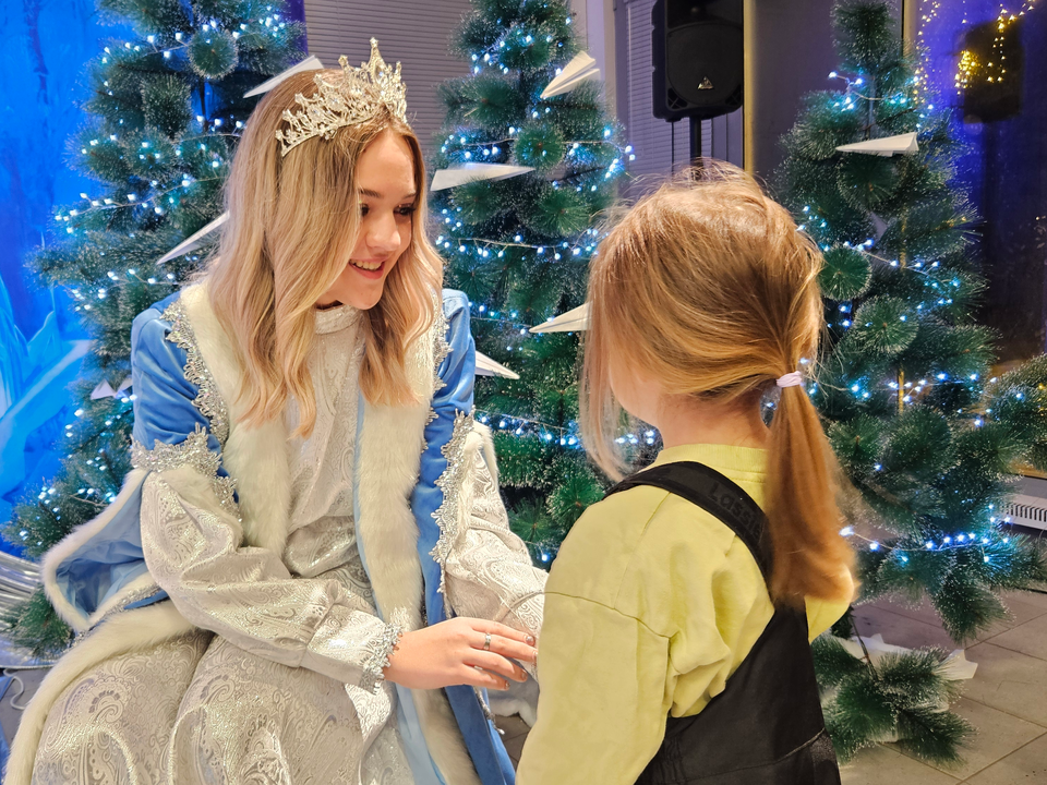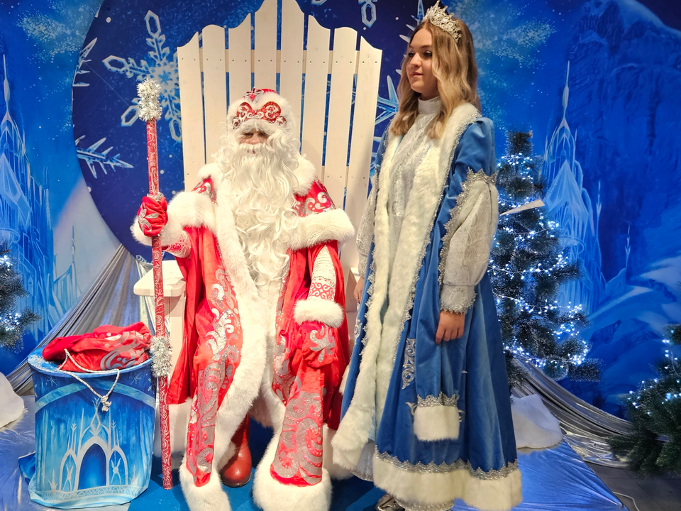 В резиденции, среди красочных декораций, Дед Мороз и Снегурочка создавали для детей ощущение сказки. Мальчики и девочки играли в активные игры, водили хороводы под песни и читали новогодним волшебникам специально выученные стихи, получая за это сладкие гостинцы.
