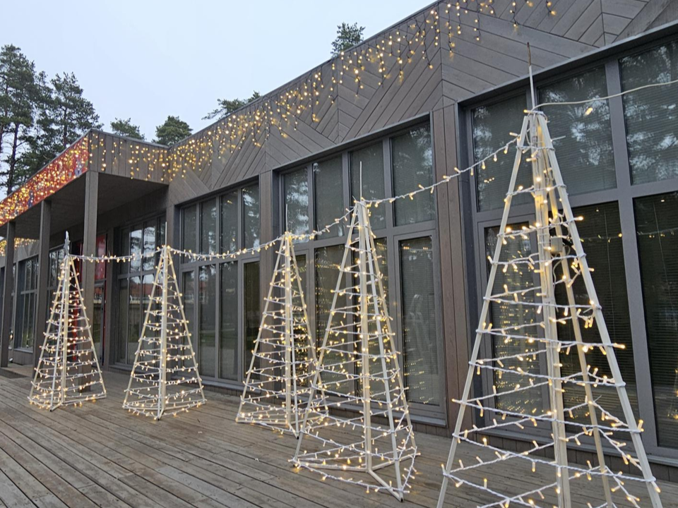 Еще одной украшенной локацией города стал городской парк. Вдоль аллей там зажгли сотни светодиодных лампочек, а возле медиацентра обустроили красочную фотозону.