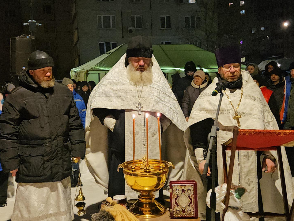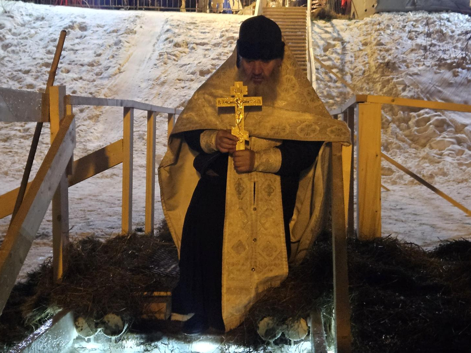 В 23:00 у проруби прошел торжественный водосвятный молебен, после чего люди разных возрастов принялись окунаться в ледяную иордань. Одни совершали погружение сосредоточенно и быстро, другие — с улыбкой и шутками.